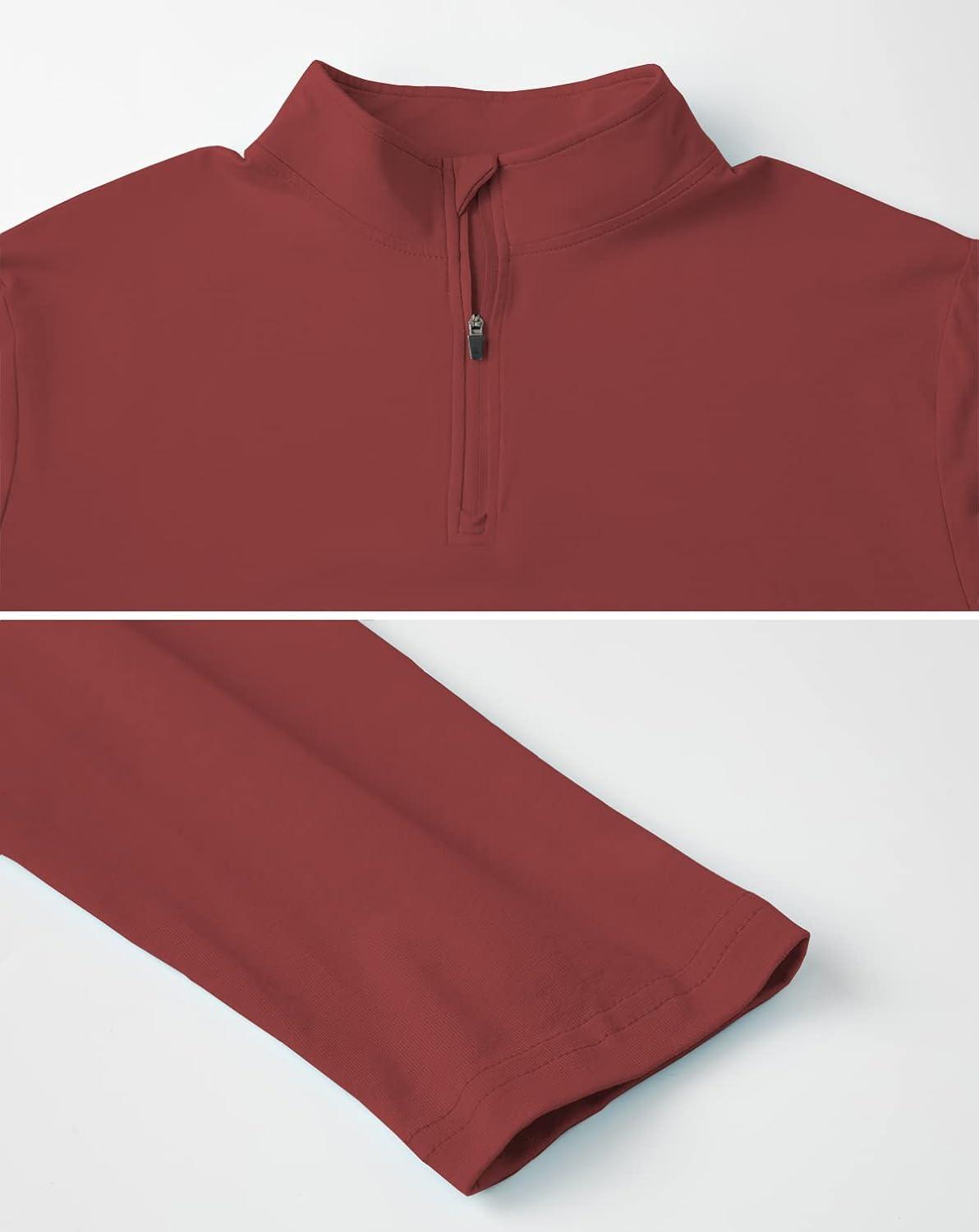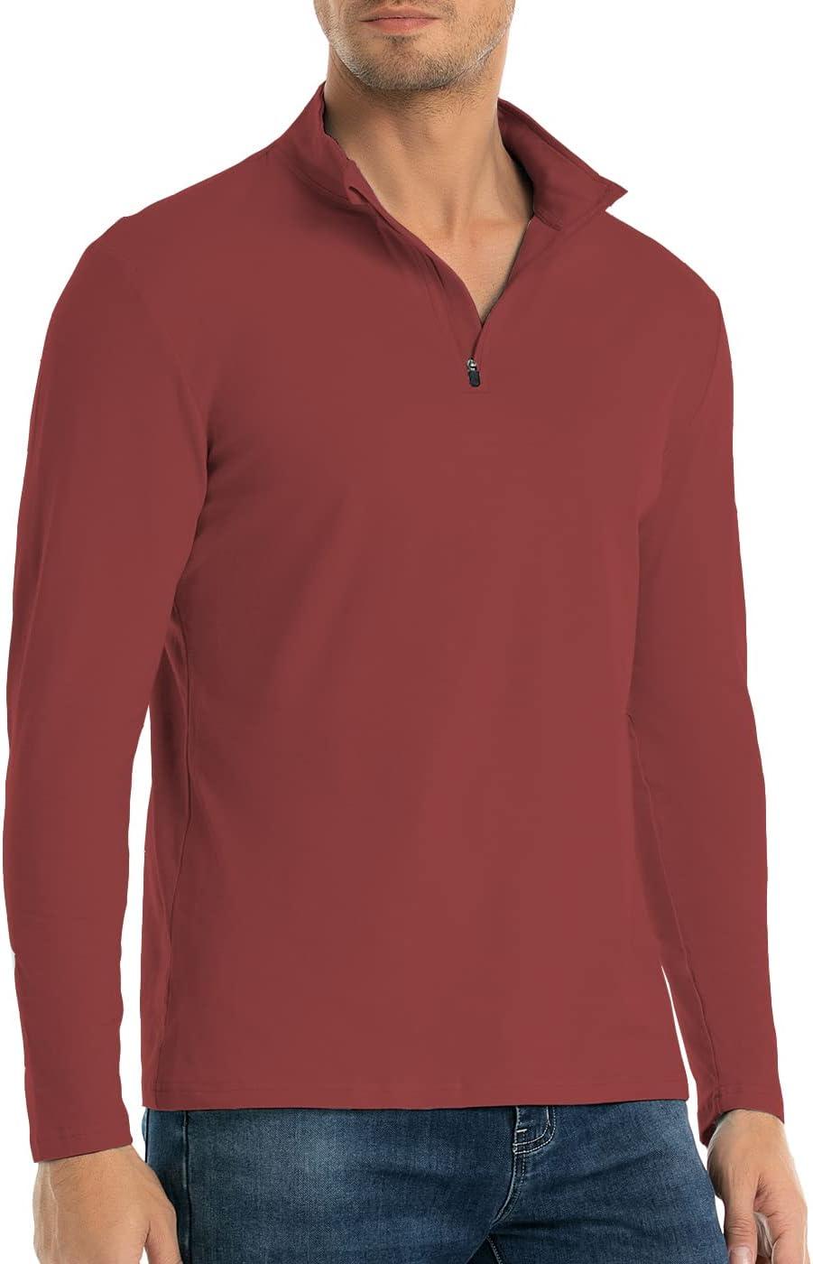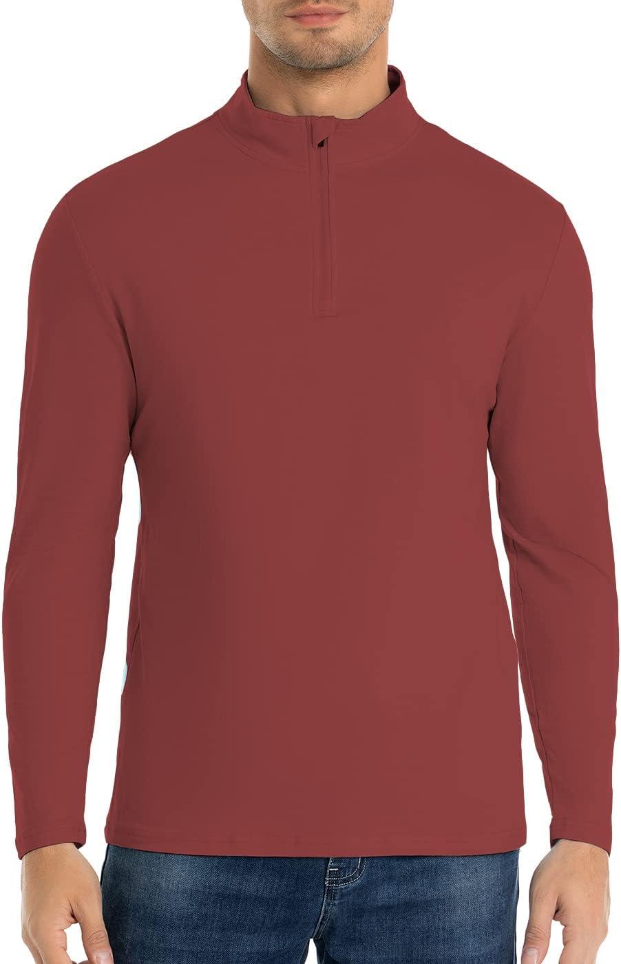 CARWORNIC Men’s 1/4 Zip Pullover Long Sleeve Shirt Casual Slim Fit Stretch Cotton Mock Neck Work Golf Shirts(Wine Red)