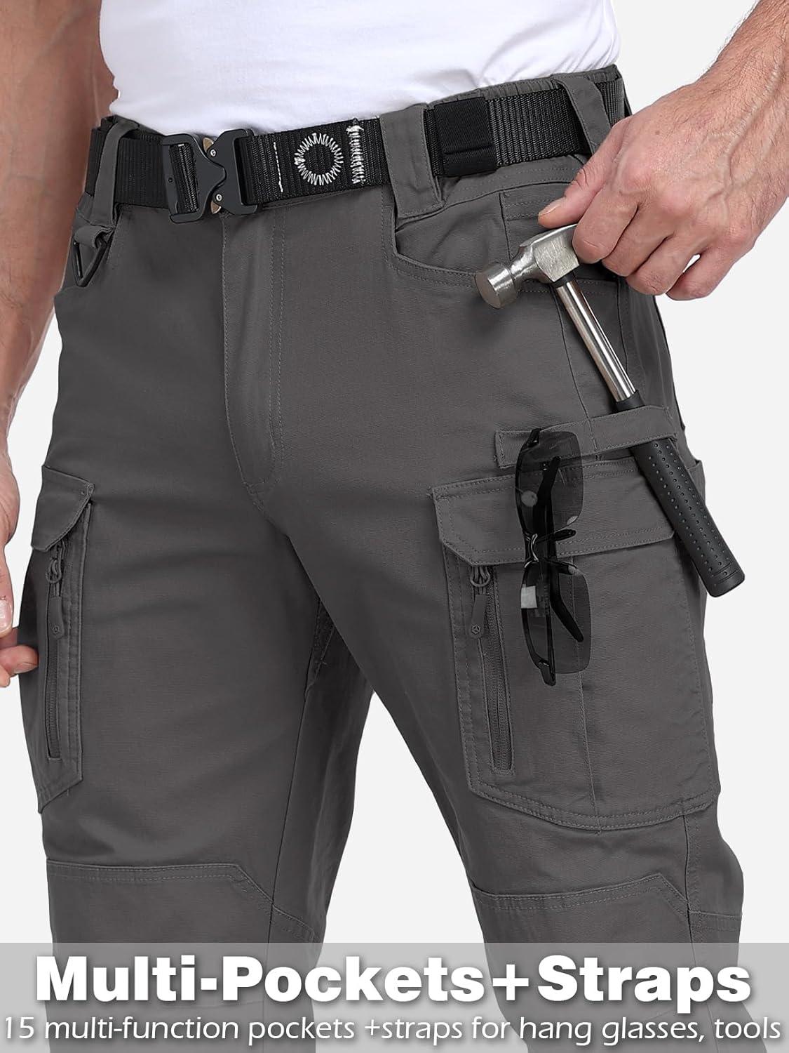 CARWORNIC Mens Cotton Stretch Tactical Work Pants Lightweight Flex Cargo Hiking Pants with 15-Pockets(Dark-gray)