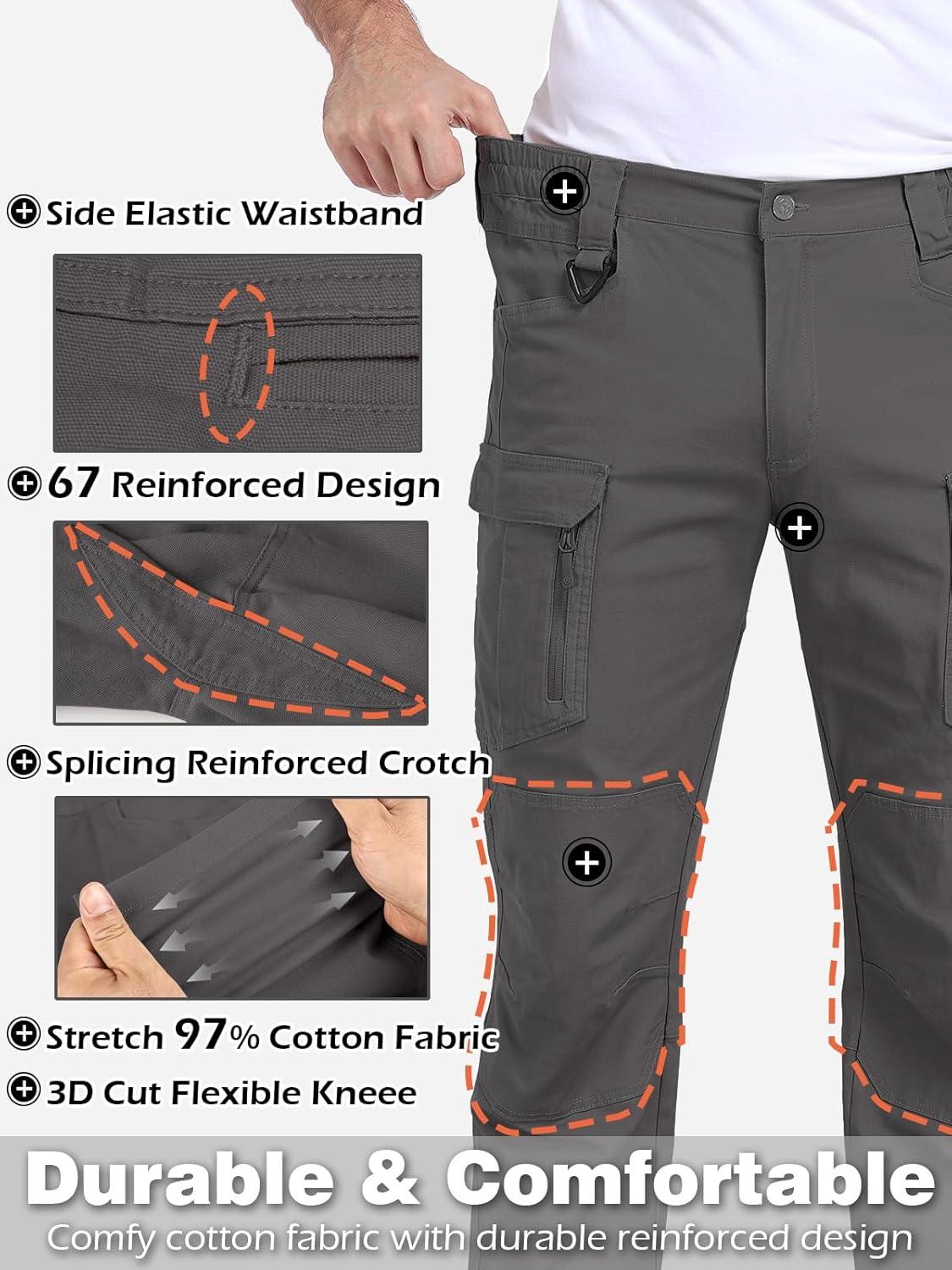 Be the first to review “CARWORNIC Mens Cotton Stretch Tactical Work Pants Lightweight Flex Cargo Hiking Pants with 15-Pockets(Dark-gray)”