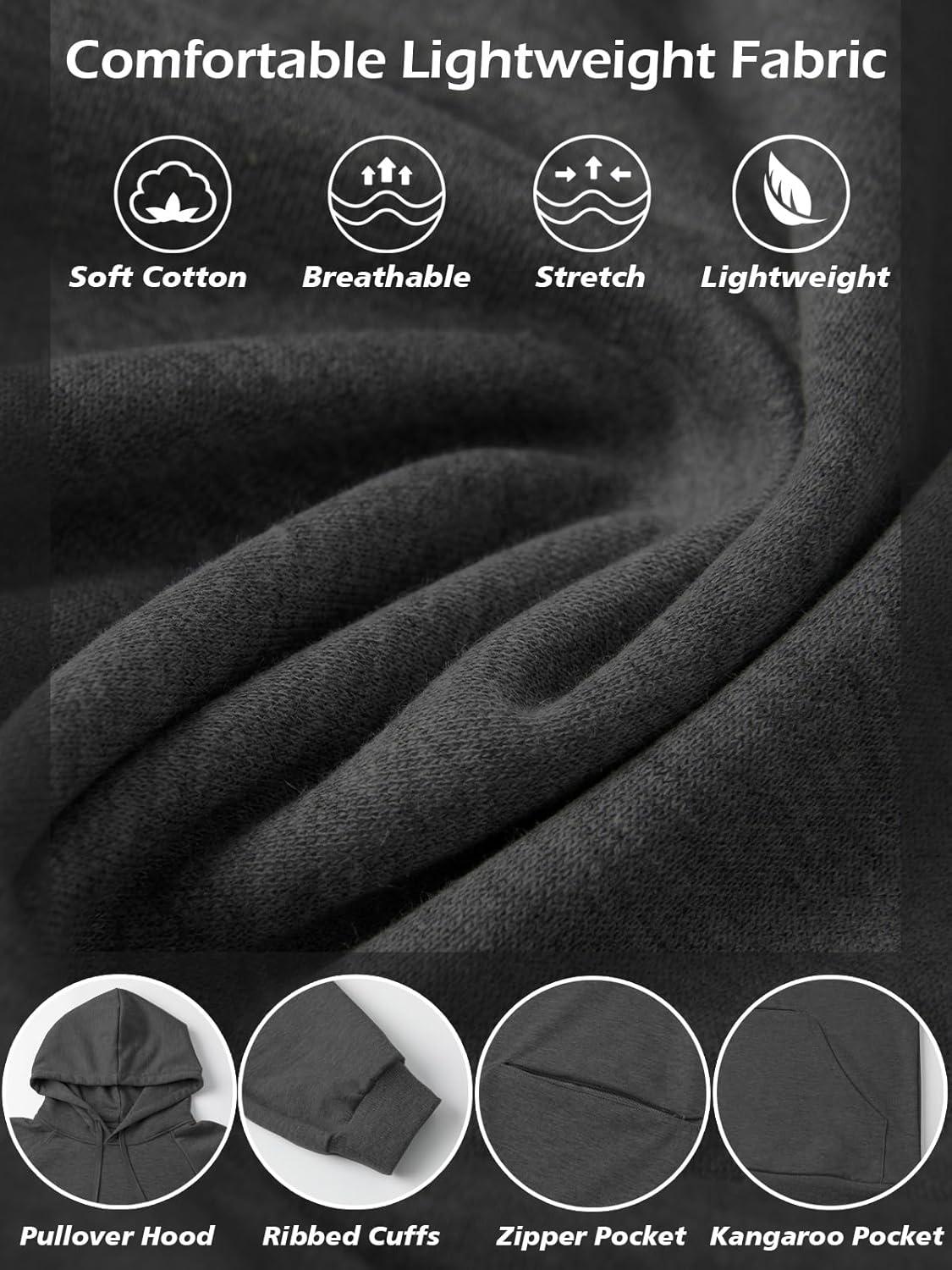 CARWORNIC Men’s Hoodies Pullover Soft Hooded Sweatshirts Long Sleeve Casual Hoodies with Zipper Pocket(Dark-grey)
