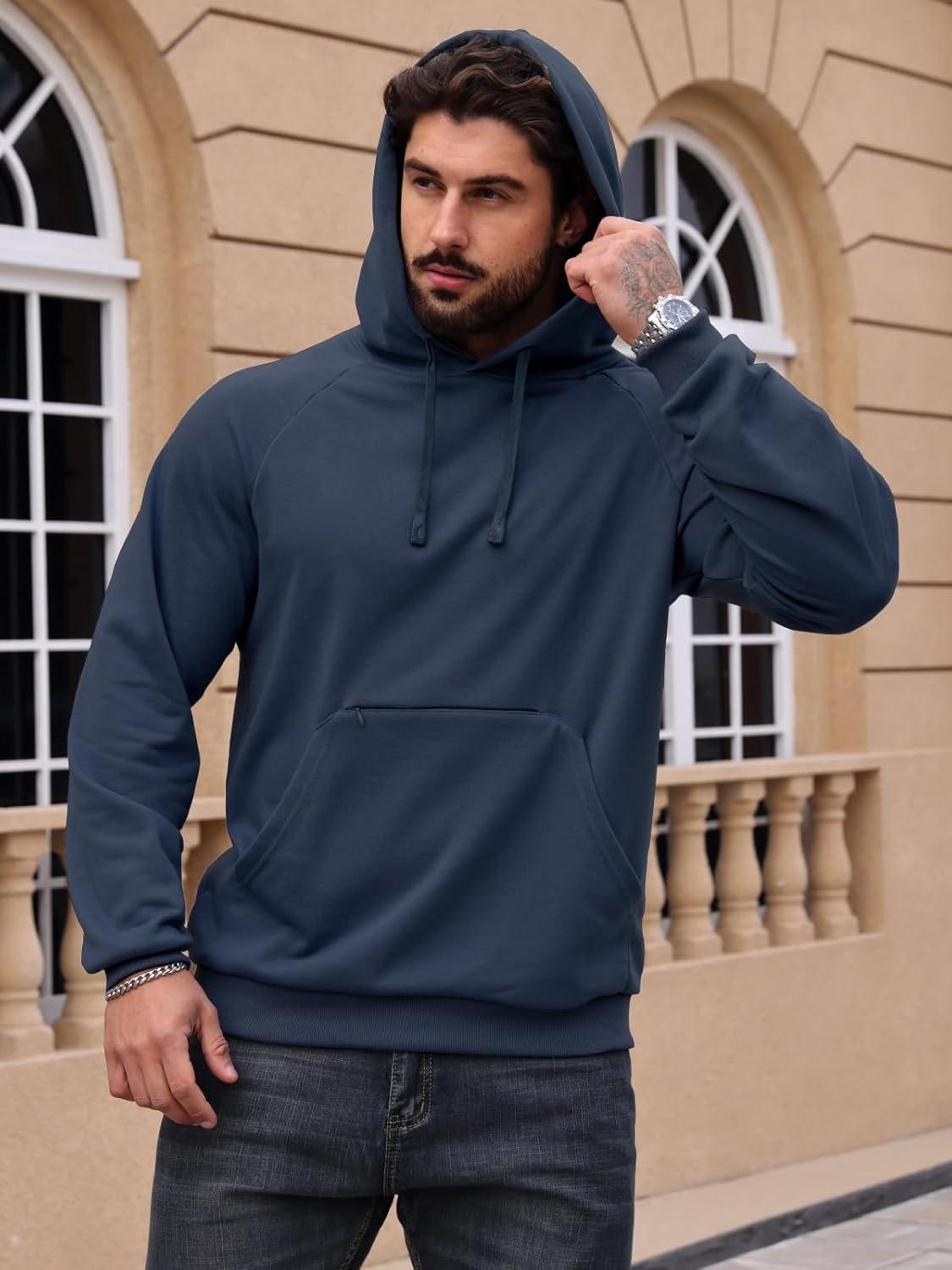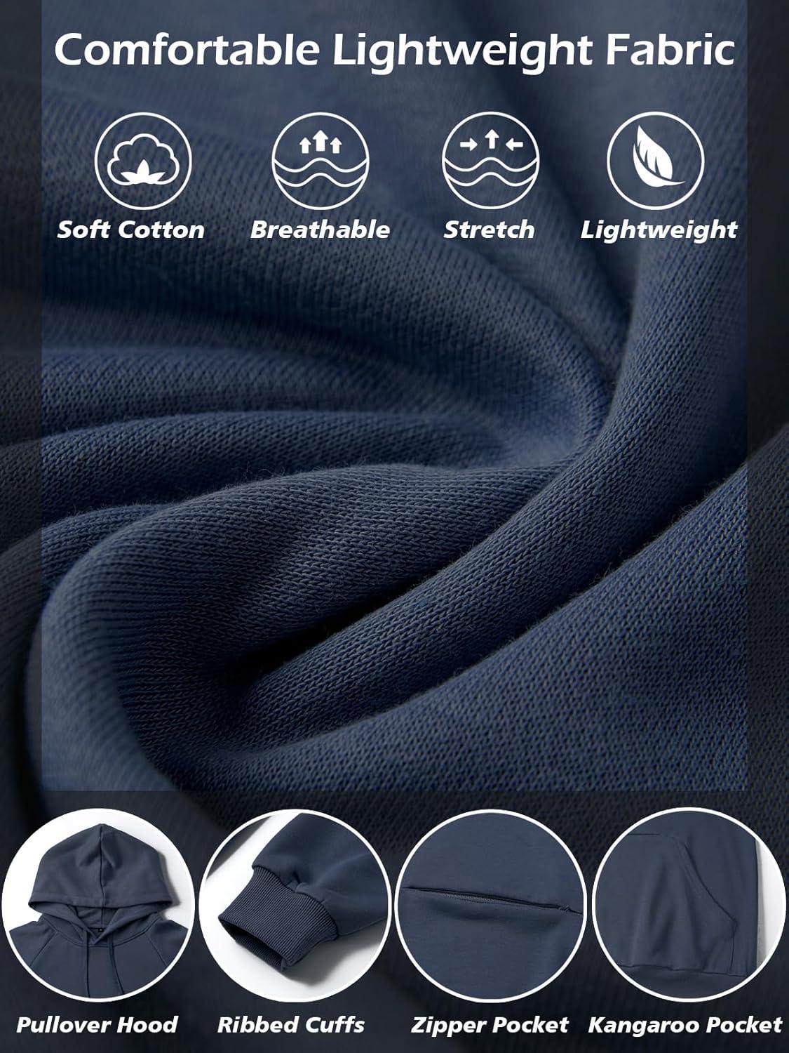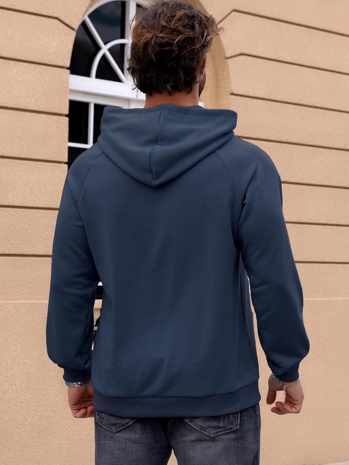 CARWORNIC Men’s Hoodies Pullover Soft Hooded Sweatshirts Long Sleeve Casual Hoodies with Zipper Pocket(Navy-blue)