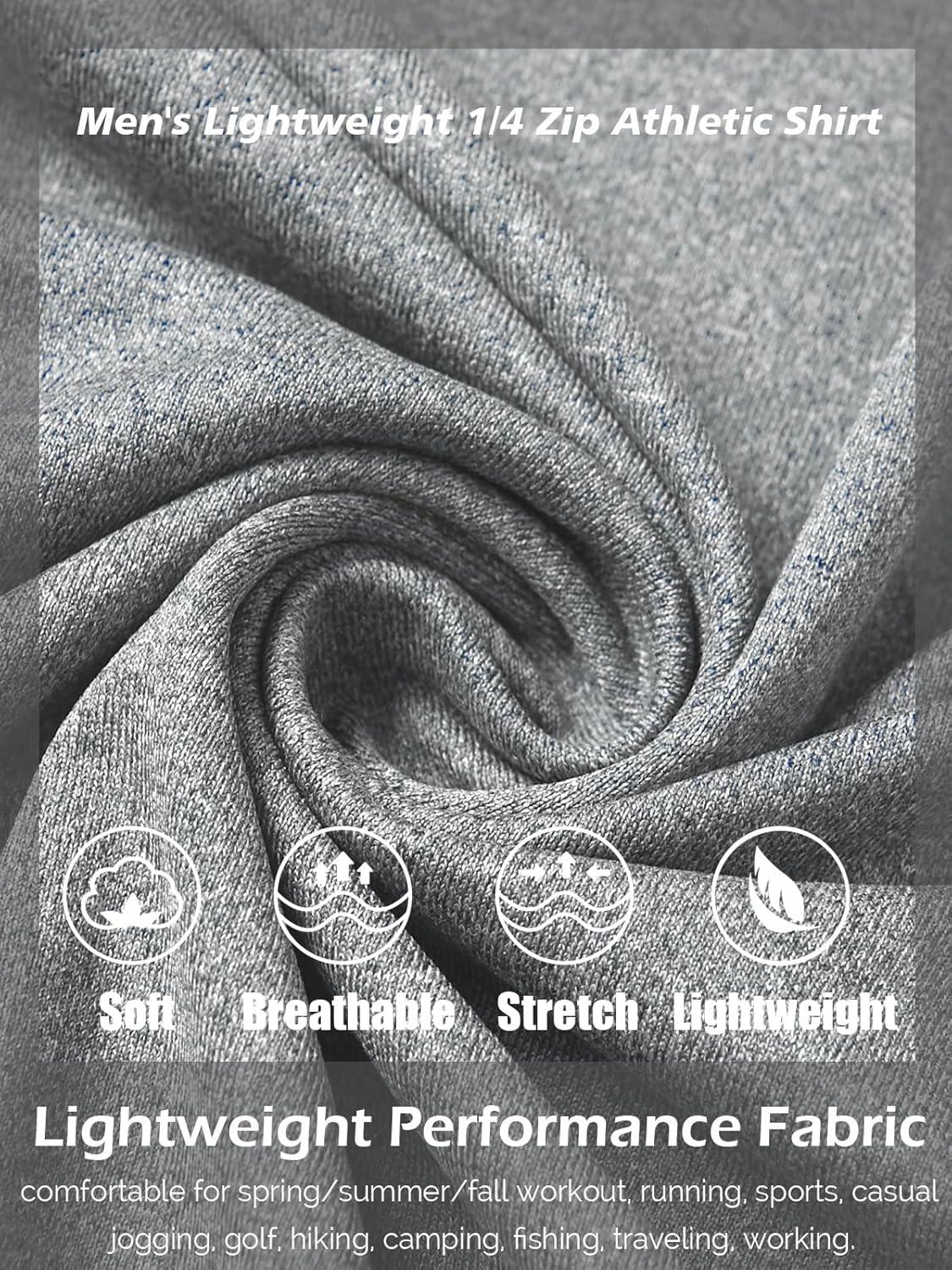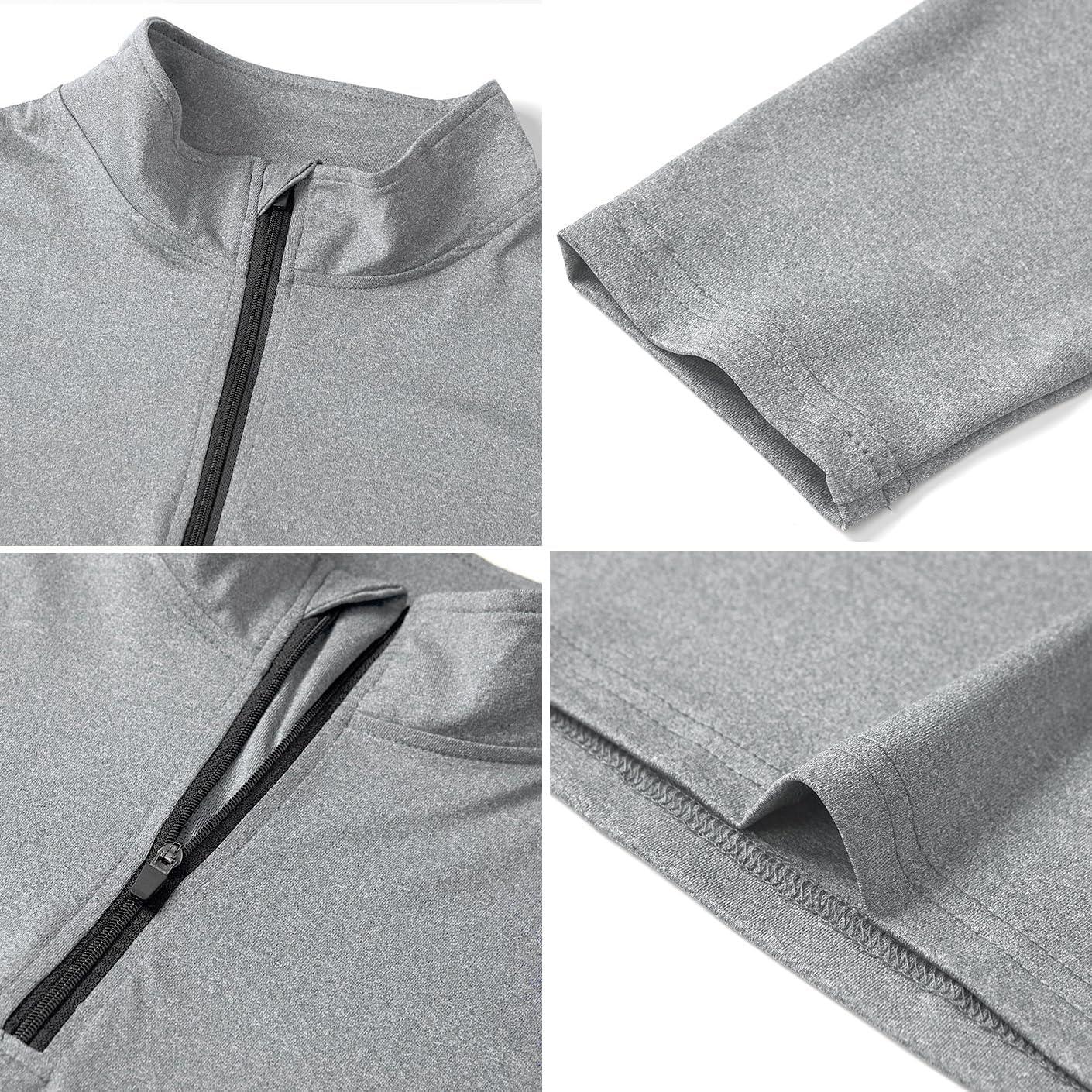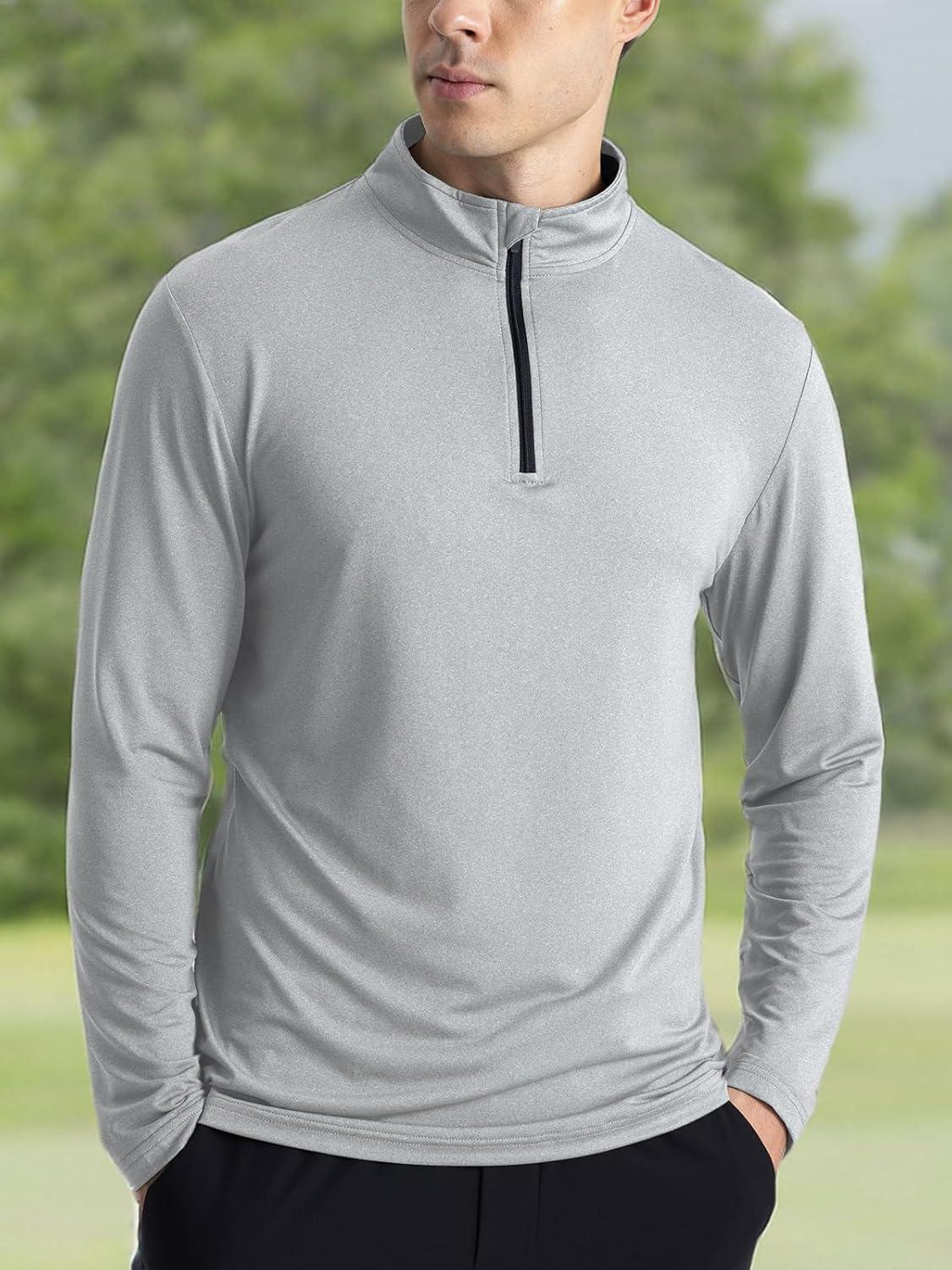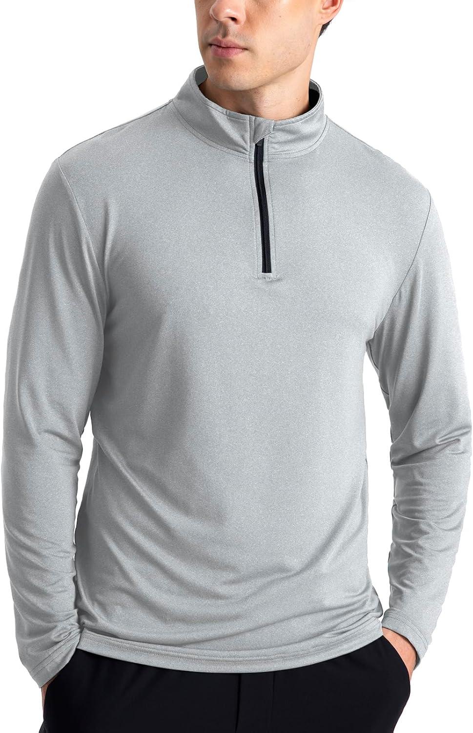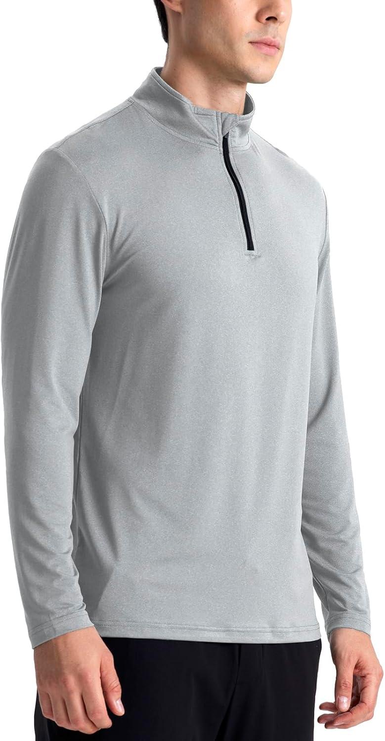 CARWORNIC Men’s Long Sleeve Athletic Shirts 1/4 Zip Pullover Quick Dry Active Sports Sweatshirt for Running Workout Gym(Sliver Grey)