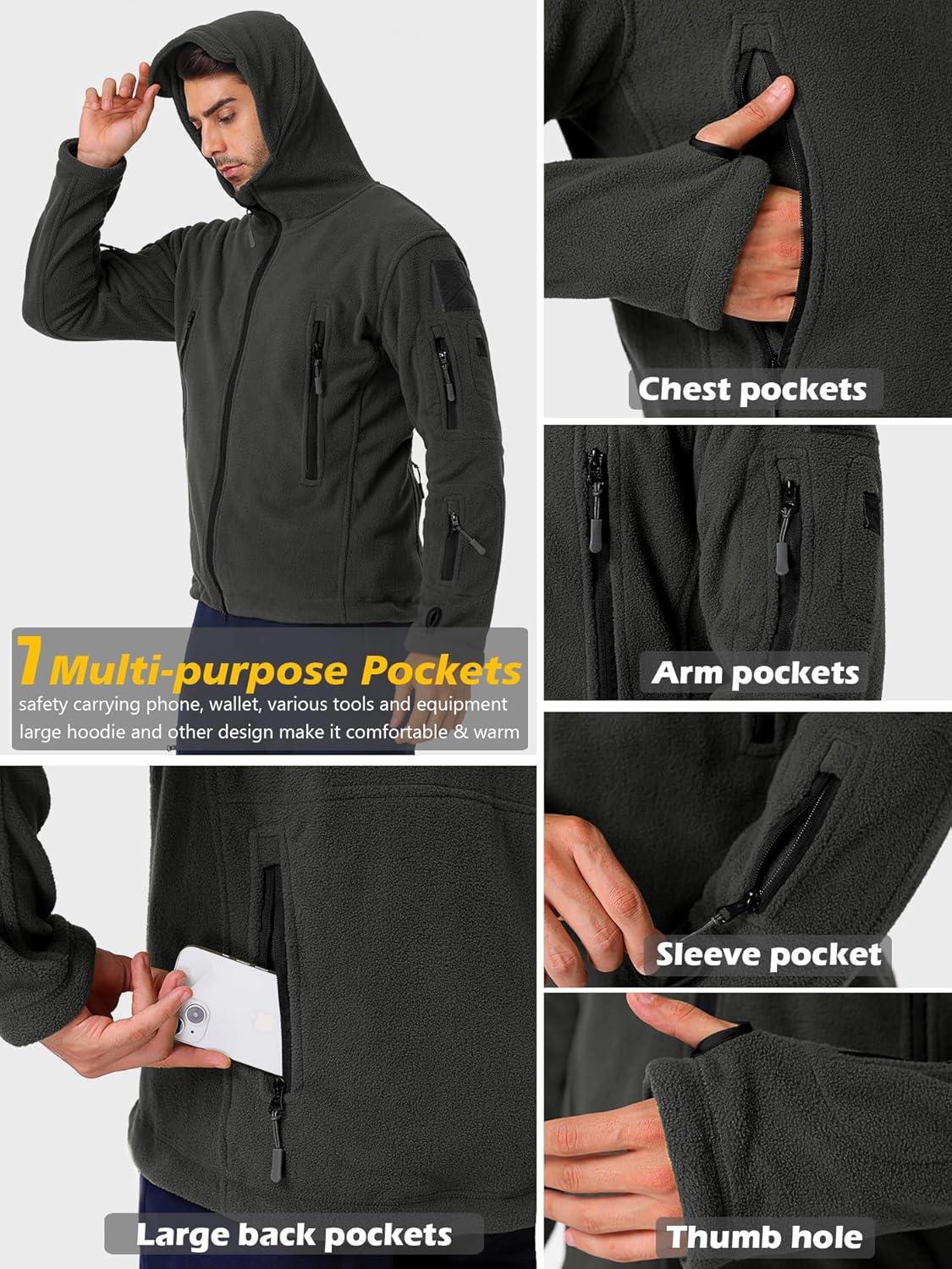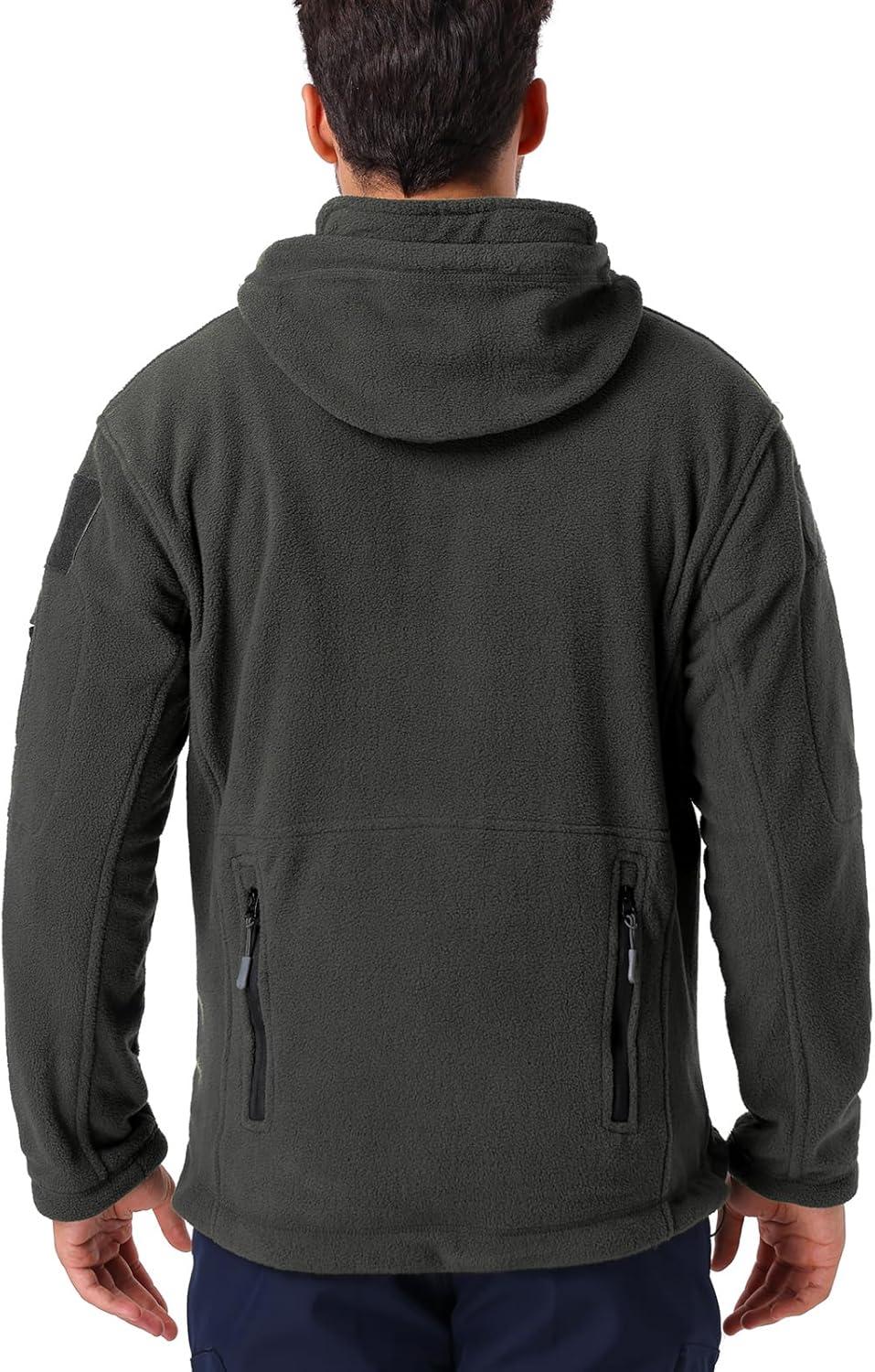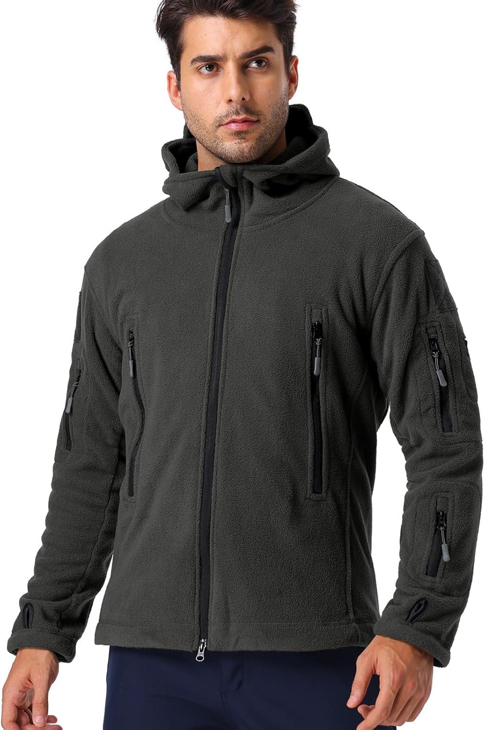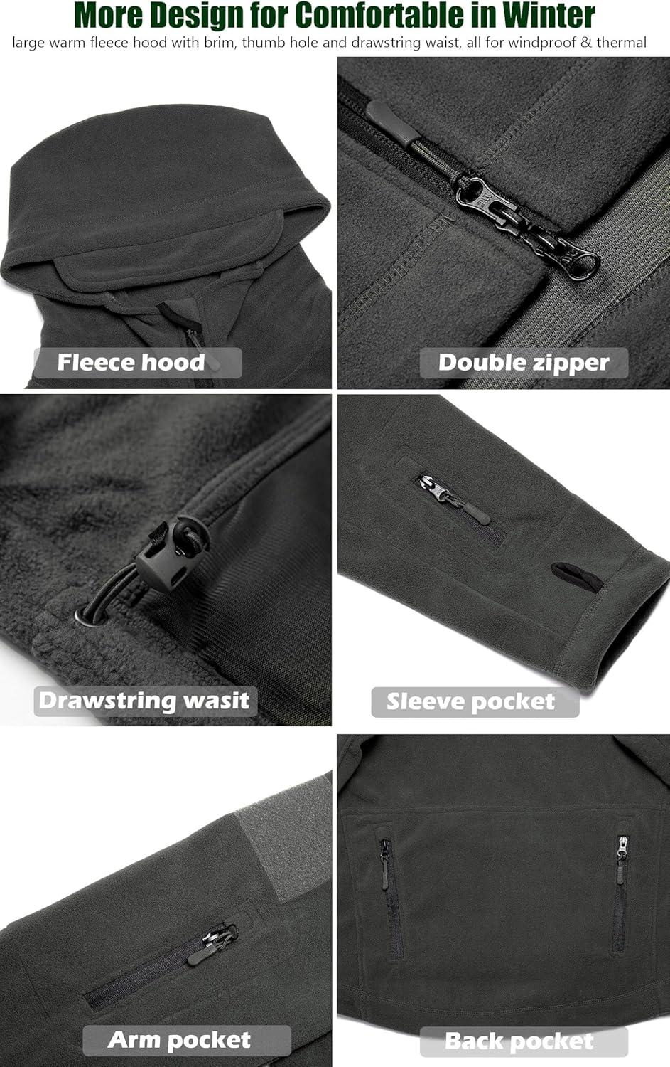CARWORNIC Men’s Military Tactical Fleece Jacket Warm Multi-Pockets Outdoor Hooded Coat(Grey)
