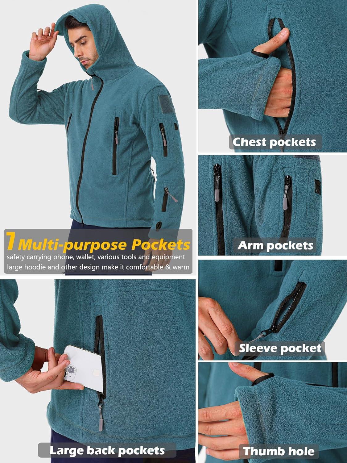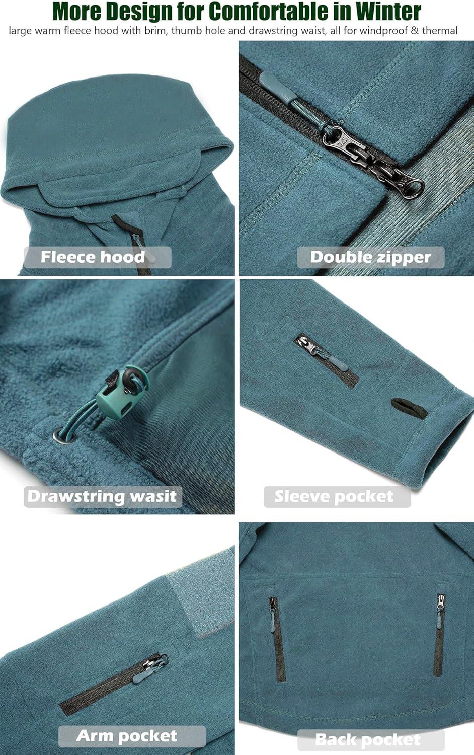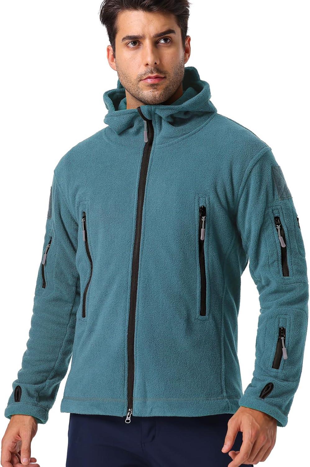 CARWORNIC Men’s Military Tactical Fleece Jacket Warm Multi-Pockets Outdoor Hooded Coat(Light Blue)