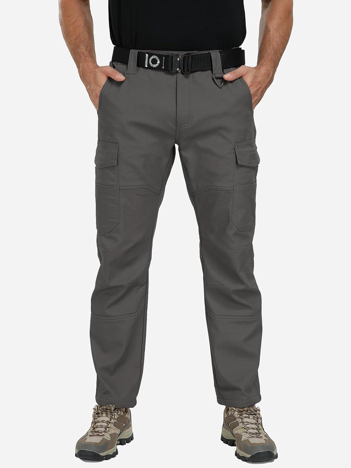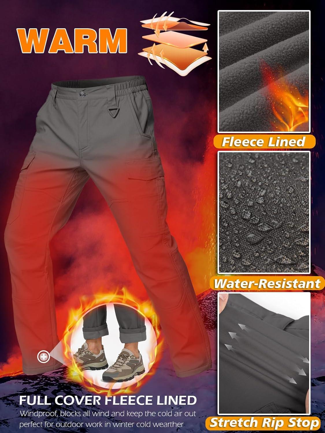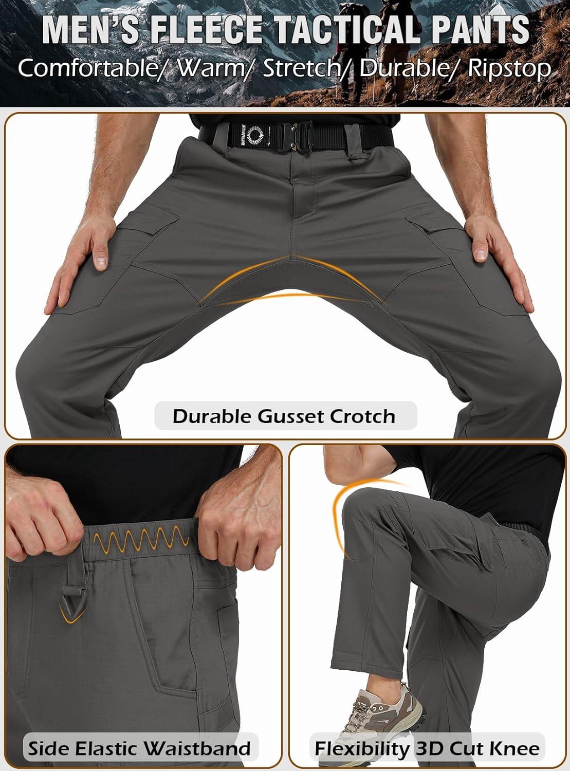 CARWORNIC Men’s Ripstop Fleece Lined Tactical Work Pants Warm Water Resistant Flex Utility Cargo Skiing Hiking Pants(Dark Grey)