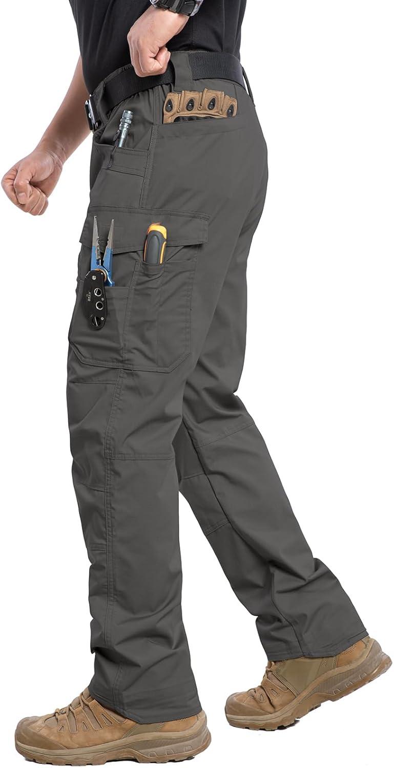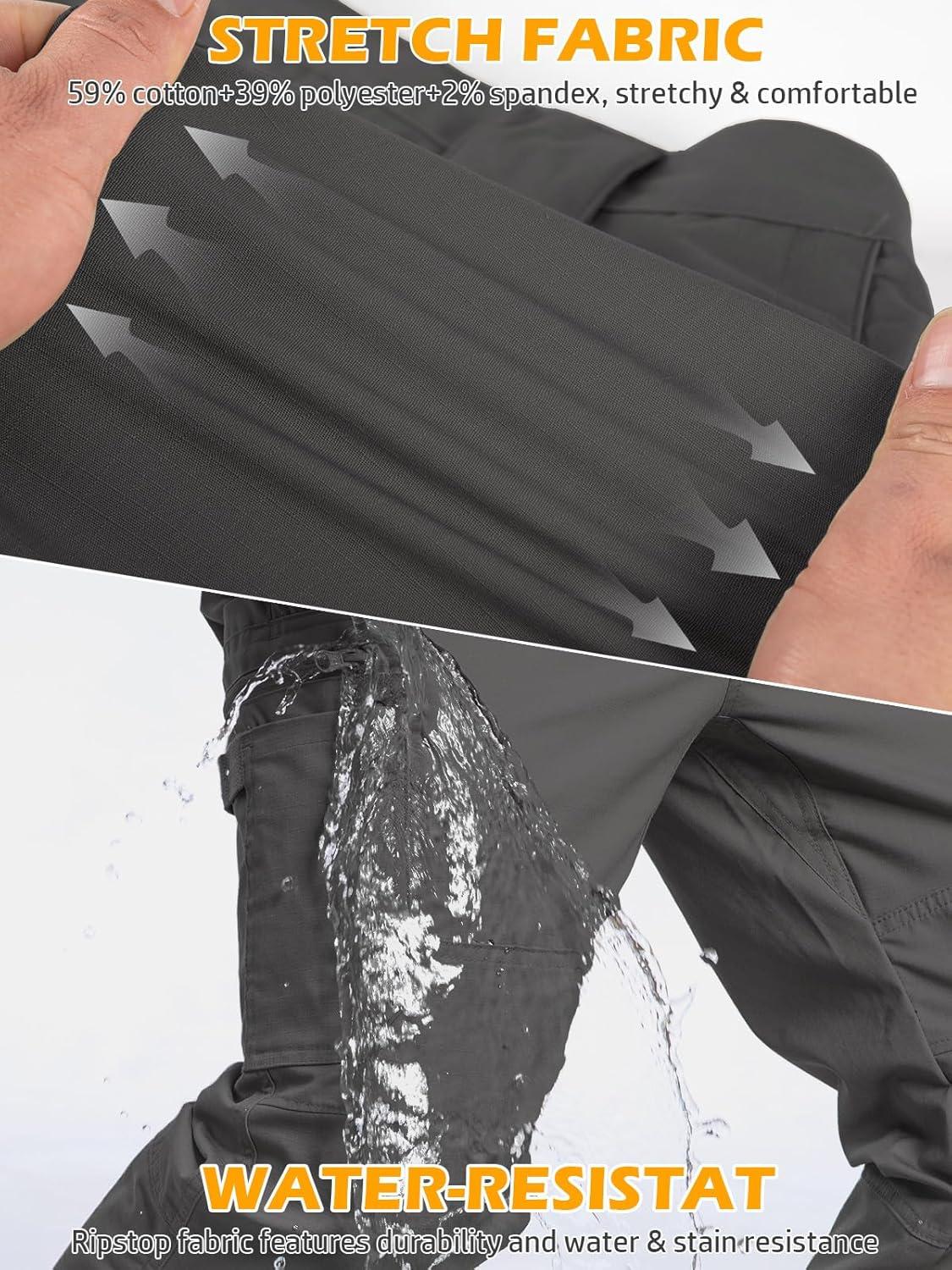 CARWORNIC Men’s Stretch Ripstop Work Pants Water Resistant Flex Cargo Pants Lightweight EDC Operator Tactical Utility Pants(Dark Grey)