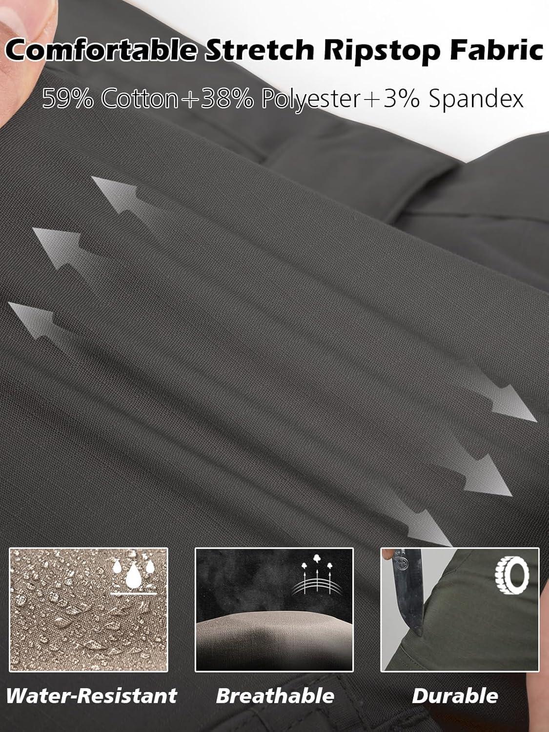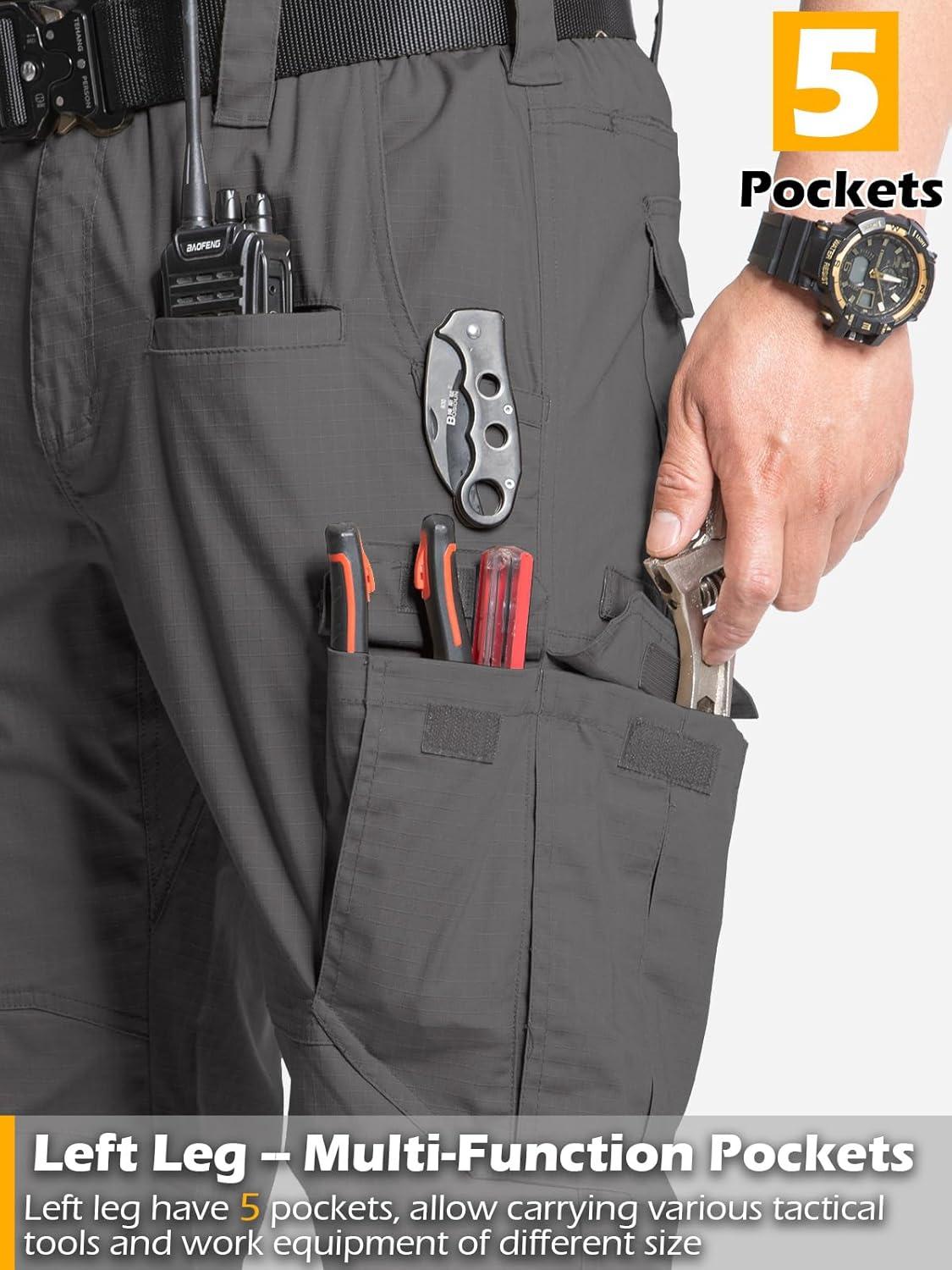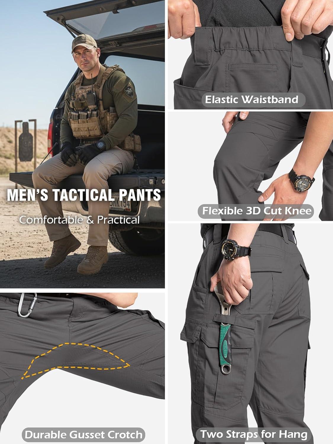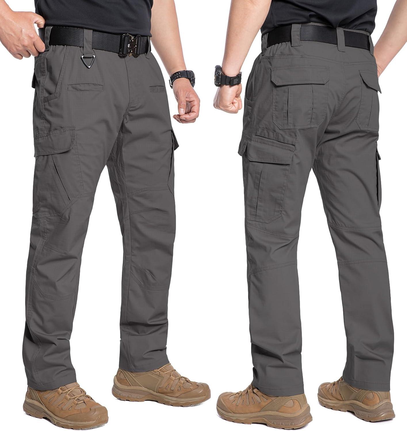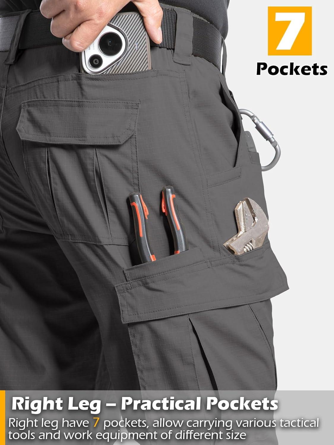 CARWORNIC Men’s Stretch Tactical Work Pants Flex Ripstop Water Resistant EDC Utility Hiking Cargo Pants with 12 Pockets(Dark Grey)