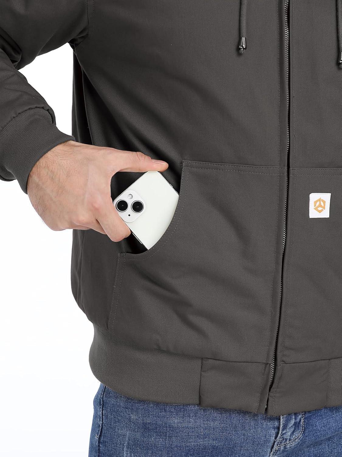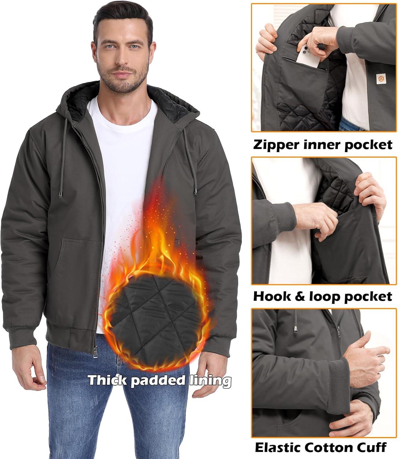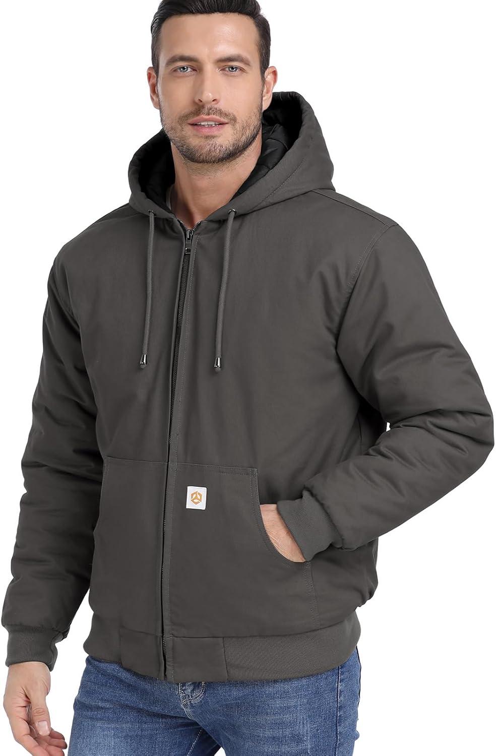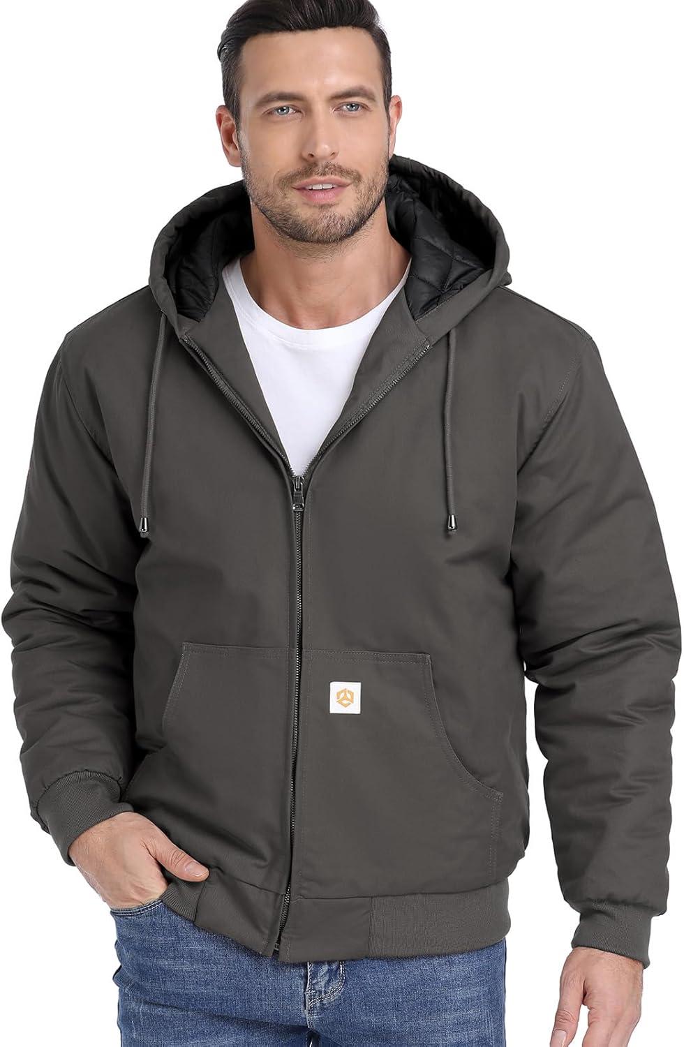 CARWORNIC Men’s Winter Hooded Active Jacket with Warm Quilted-Lined Cotton Outdoor Workwear Coats(Dark-gray)