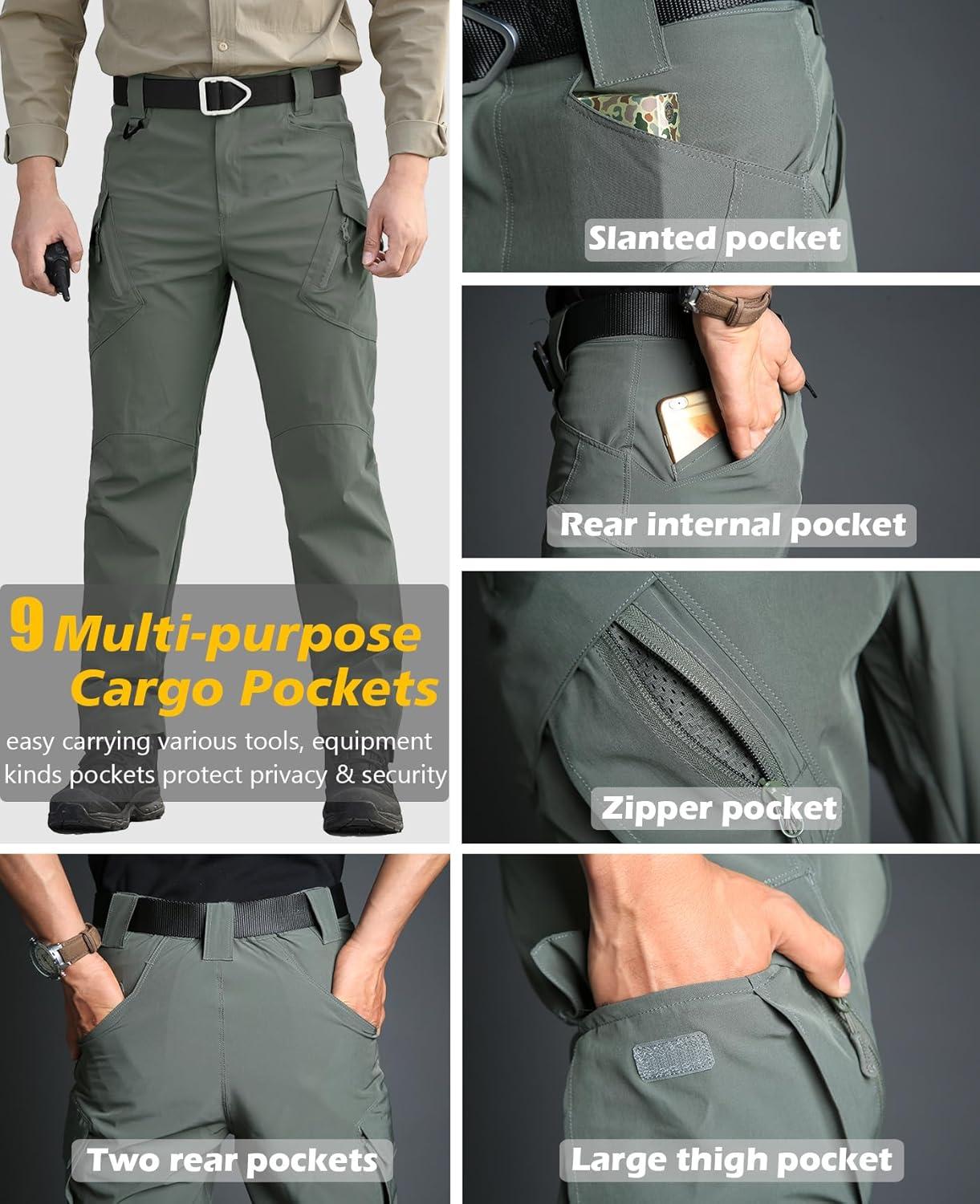 ReFire Gear Men’s Quick Dry Tactical Pants Summer Lightweight Outdoor Hiking Cargo Trousers(Army Green)