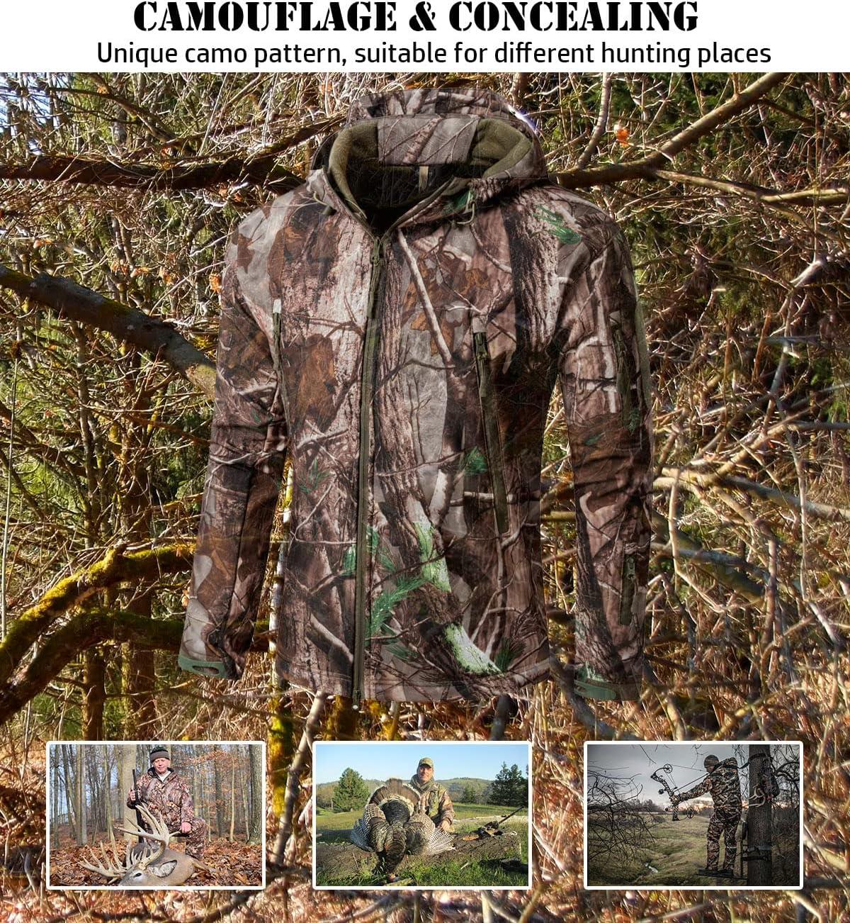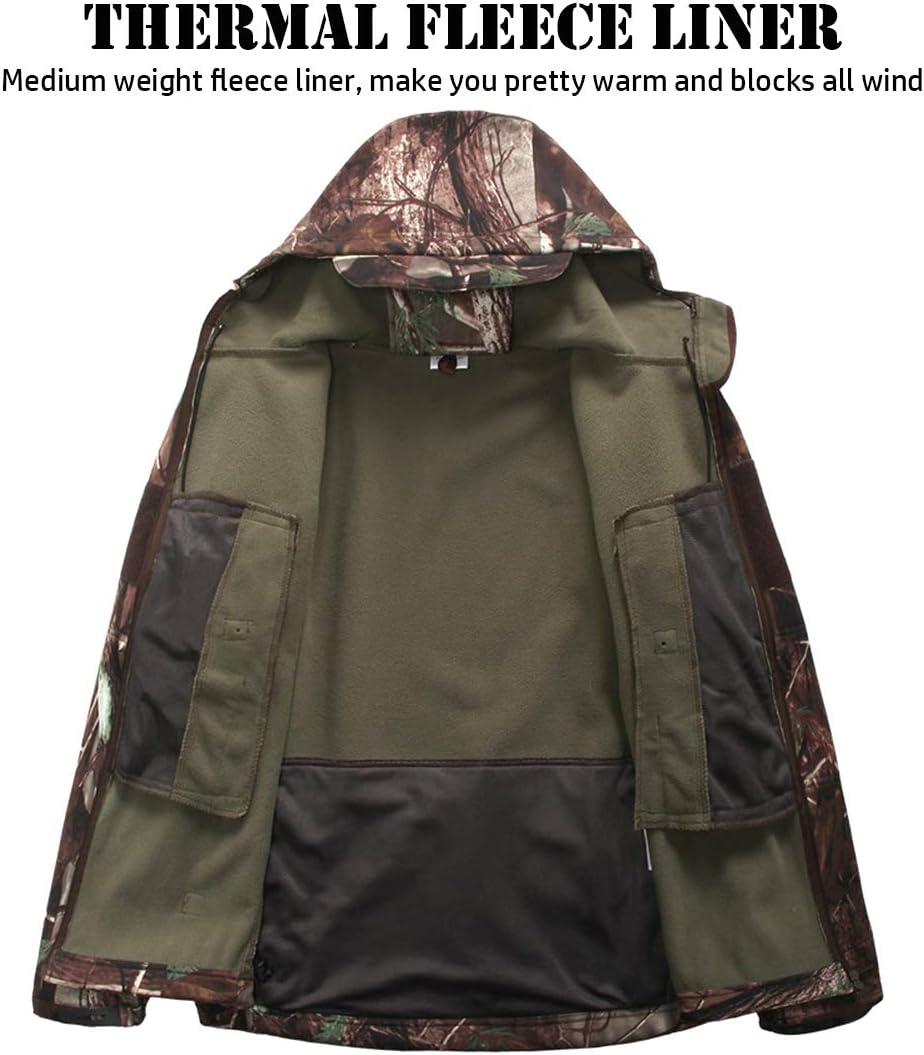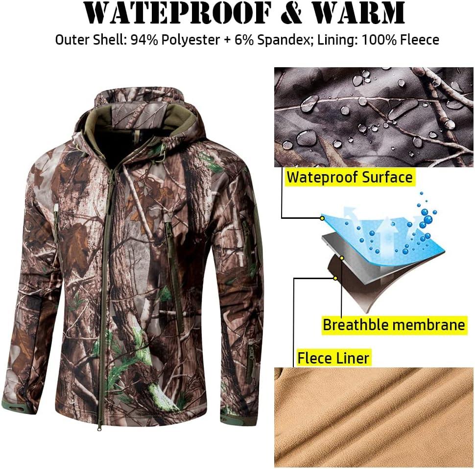 ReFire Gear Men’s Soft Shell Military Tactical Jacket Outdoor Camouflage Hunting Fleece Hooded Coat(Khaki Camo)