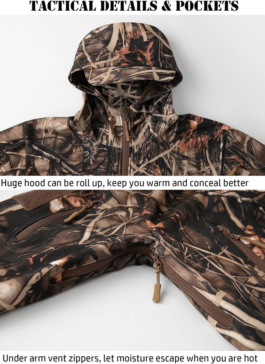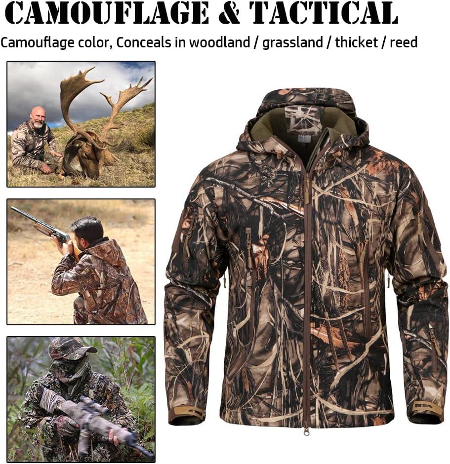 ReFire Gear Men’s Soft Shell Military Tactical Jacket Outdoor Camouflage Hunting Fleece Hooded Coat(Reeds Camo)