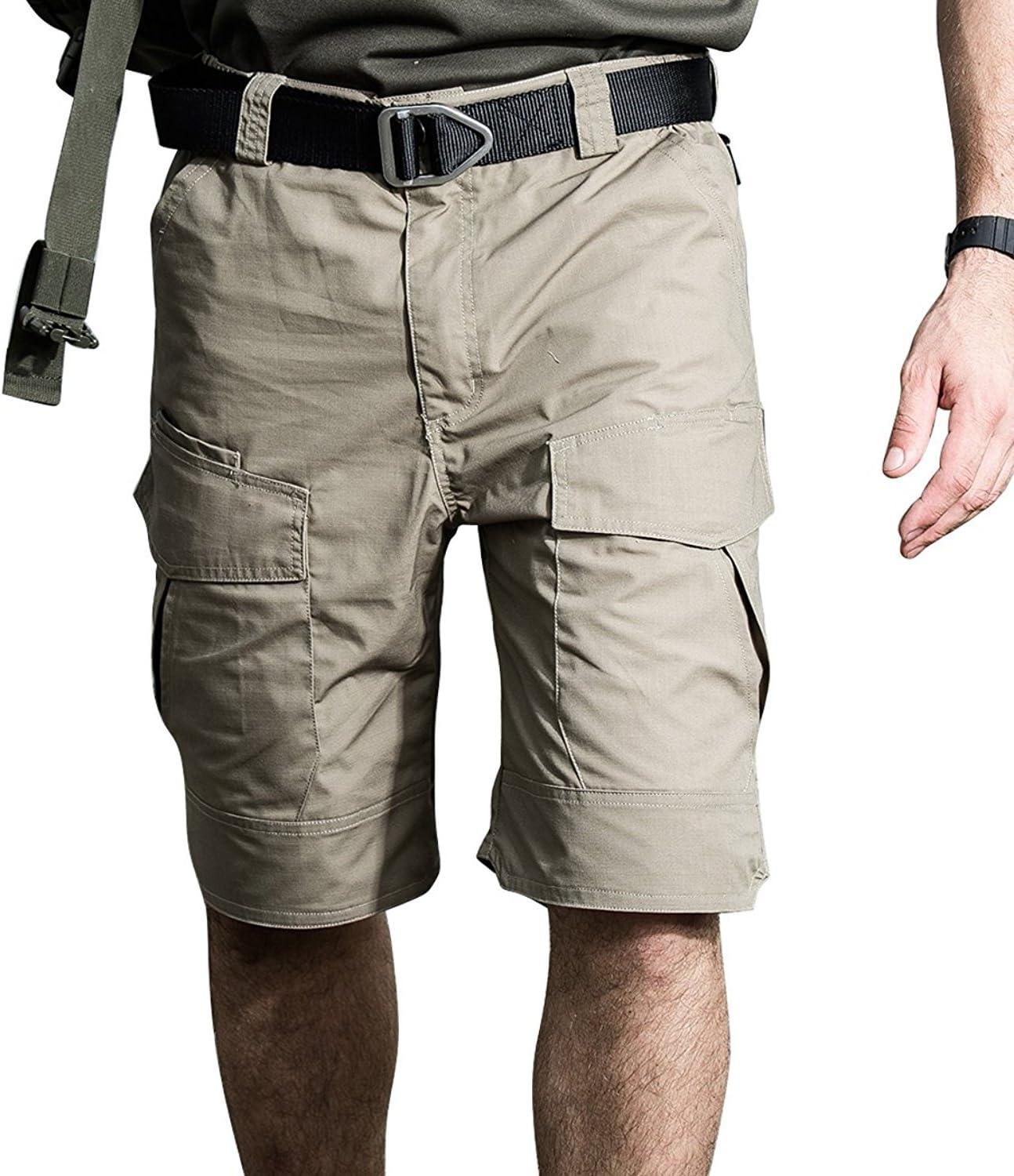 ReFire Gear Men’s Urban Tactical Military EDC Cargo Shorts Rip Stop Cotton Outdoor Camo Shorts(Khaki)