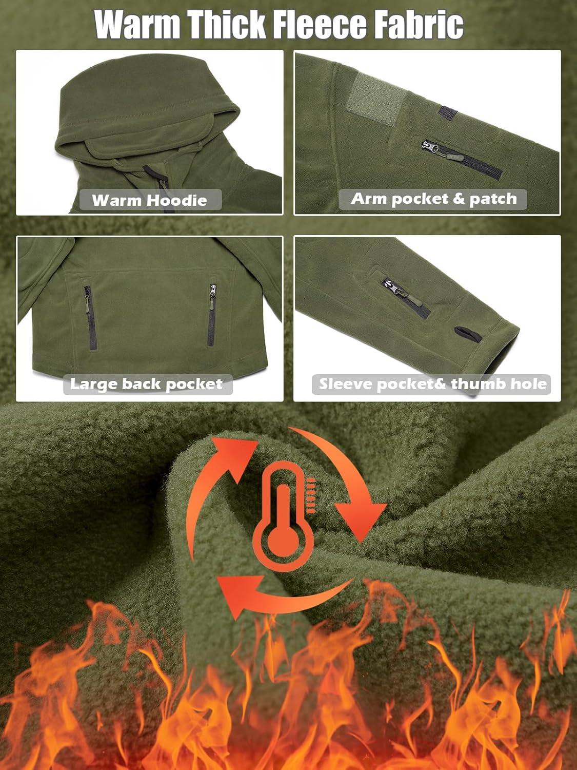 ReFire Gear Men’s Warm Military Tactical Sport Fleece Hoodie Jacket(Army Green)