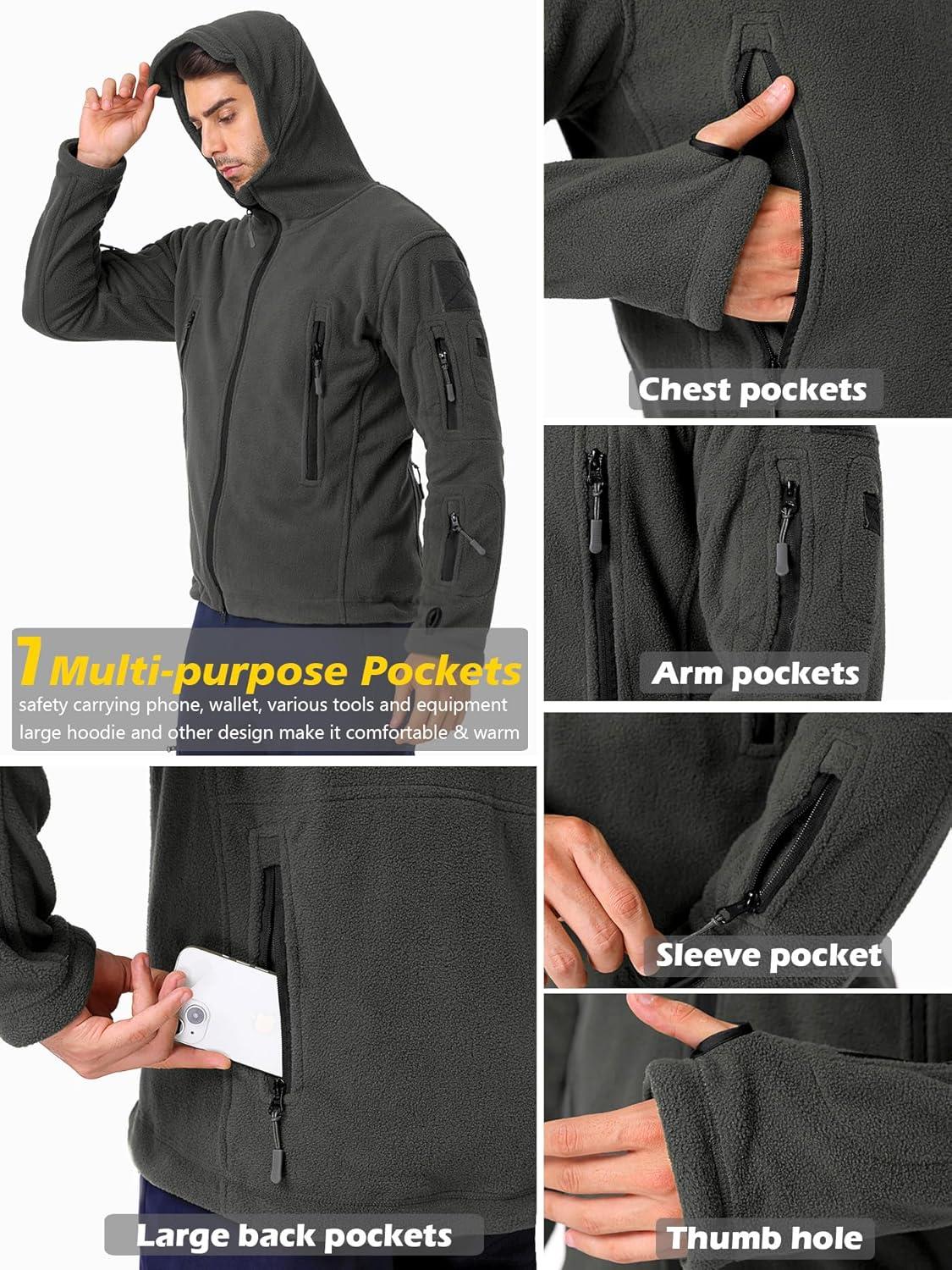 ReFire Gear Men’s Warm Military Tactical Sport Fleece Hoodie Jacket(Gray)